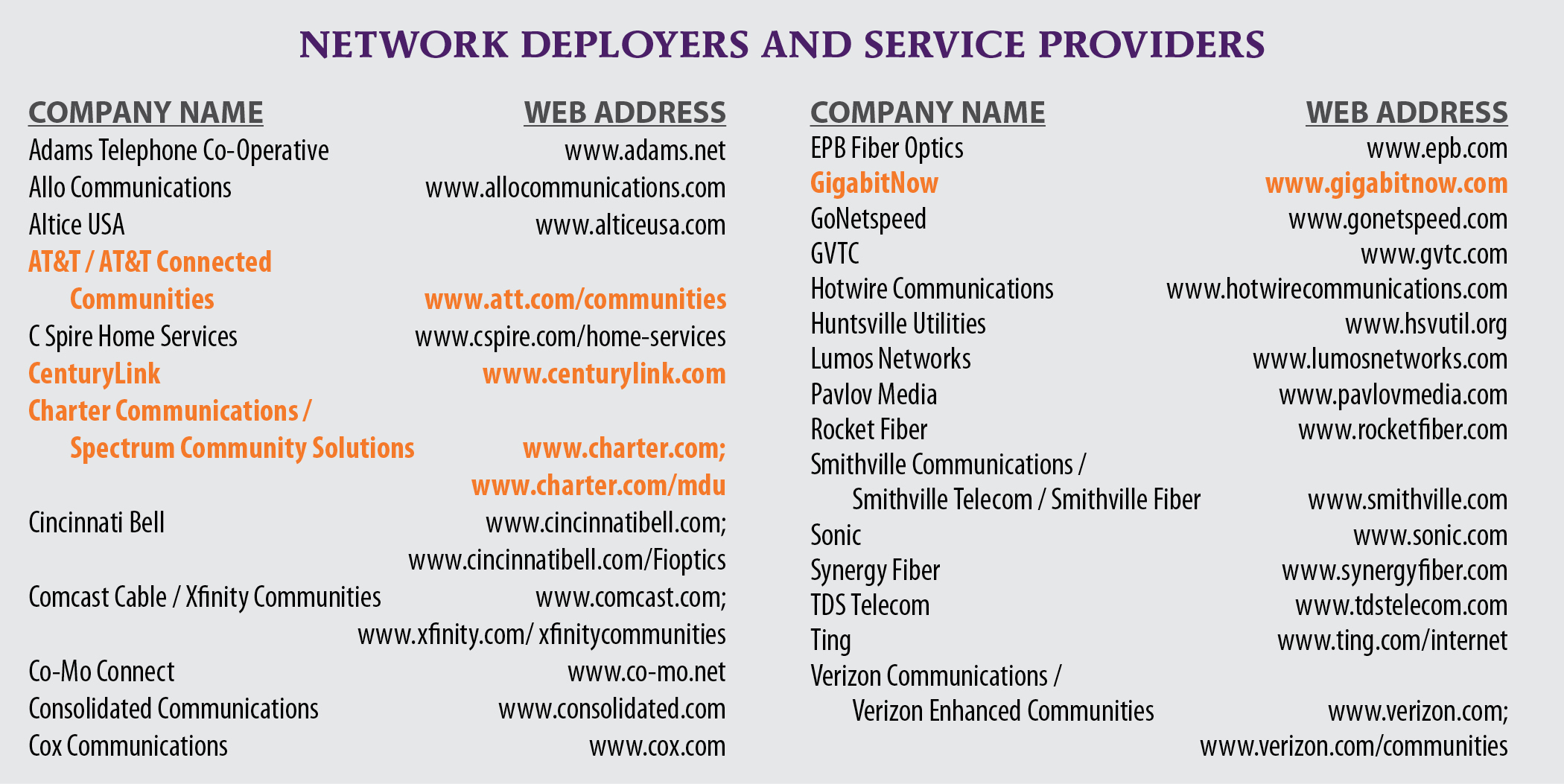 Companies newly added or reinstated to the list represent a variety of ecosystem niches. These niches are quite diverse. Three of the new entrants – Consolidated, GVTC and Lumos Networks – are incumbent telcos that are aggressively expanding 1 Gbps FTTH services in diverse rural towns and cities. Consolidated is rapidly expanding 1 Gbps FTTH service throughout the former FairPoint territory, and GVTC and Lumos are encouraging economic development with new fiber builds. Another notable trend is the growing presence of electric cooperatives and competitive providers. Co-Mo Connect is an electric cooperative that was funded without grants and now offers 1 Gbps services to its electric customers, GoNetspeed lures customers with fixed broadband pricing, and Synergy offers managed services to MDUs.