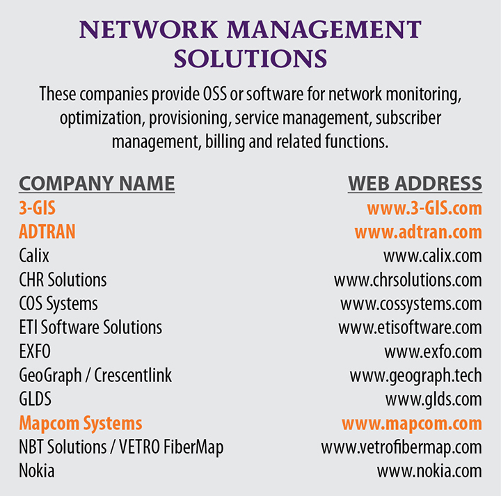 Joining the network operators is a host of companies that provide construction, financing, network planning and powering. Last Mile Communications provides telcos and cable companies with a variety of consulting and capital funding services, and Neighborly connects underserved communities with capital for fiber broadband networks. ESPi offers a series of uninterrupted power supply batteries that provide protection against input power interruptions for FTTH providers. Foresite Group provides broadband engineering and related services. Render is gaining ground with rural providers with its suite of geospatial network deployment solutions to help providers build large-scale projects faster and cheaper, Geograph provides tools for network planning and design, and Tesmec USA provides open-trench solutions for fiber deployments.