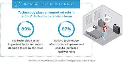 - Technology was an important factor in a renters’ decision to sign or renew a lease, according to 89 percent of respondents.