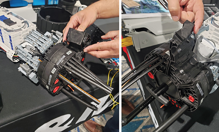 This new twist in fiber distribution from Hexatronic (www.hexatronic.com) allows deployers to use cheaper and often more-available multiple low-strand-count fiber cables in a single duct and keep easy track of them with color-coded, straw-like mini-ducts inside.