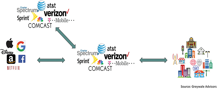 The broadband ecosystem is not really that simple. In the U.S. market, most broadband access providers also provide applications, services and content (see Figure 2). In addition, cloud companies have numerous initiatives to accelerate the deployment of both fixed and wireless broadband networks. For example, two projects led by Facebook, the Open Compute Project and the Telecom Infra Project, are trying to accelerate the incumbent providers to move faster. Alphabet/Google took an alternative approach and created Google Fiber to overbuild select cities with its own fiber-to-the-premises networks. Even with net neutrality regulations, the playing field is not level because some players have more power than others.