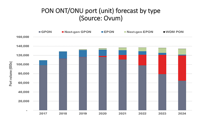 Although 25G and 50G PON should begin shipping in 2023, Ovum forecasts low sales volumes – at least initially. “Operators have different opinions: Is 10G enough, or do you need to go to 25G?” Kunstler says.