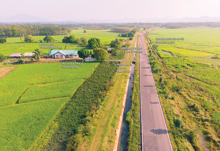 A good example: It’s not enough to just plan a parcel-by-parcel fiber hookup to a home. Project managers need to know where the meter box is on the house and if a driveway or landscaping needs to be reinstated, repaved or repaired. These small factors add up quickly and can greatly impact overall construction cost.