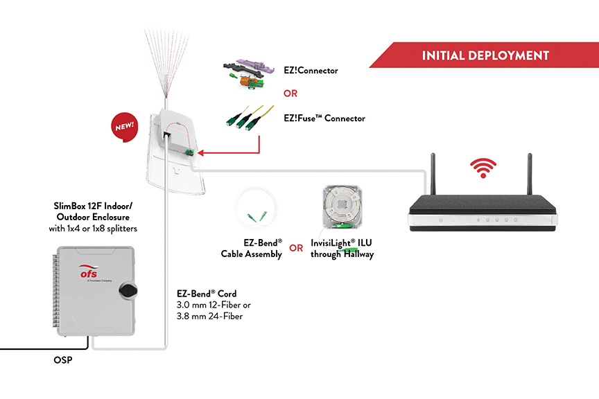 Some service providers may be the second or third fiber entrant in a building, may deploy fiber to businesses in multitenant buildings, or may prefer to defer construction costs. These service providers can benefit from a system that reduces initial capital investment yet enables on-demand fiber deployment to subscribers.
